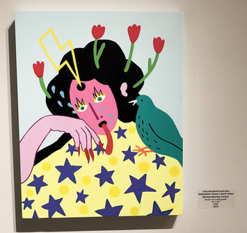 The same imagery recurs in many of the works - birds, cats, eyes, flowers - tiny visual echoes that resemble the glyphs of a lost civilization, their meanings untranslatable but strangely familiar, as if drawn from our shared dreams. It’s never fully clear whether Baron is mapping an imaginary world of her own design or simply offering snapshots from an alternate dimension. Either way, the characters and symbols she reveals are captivating.