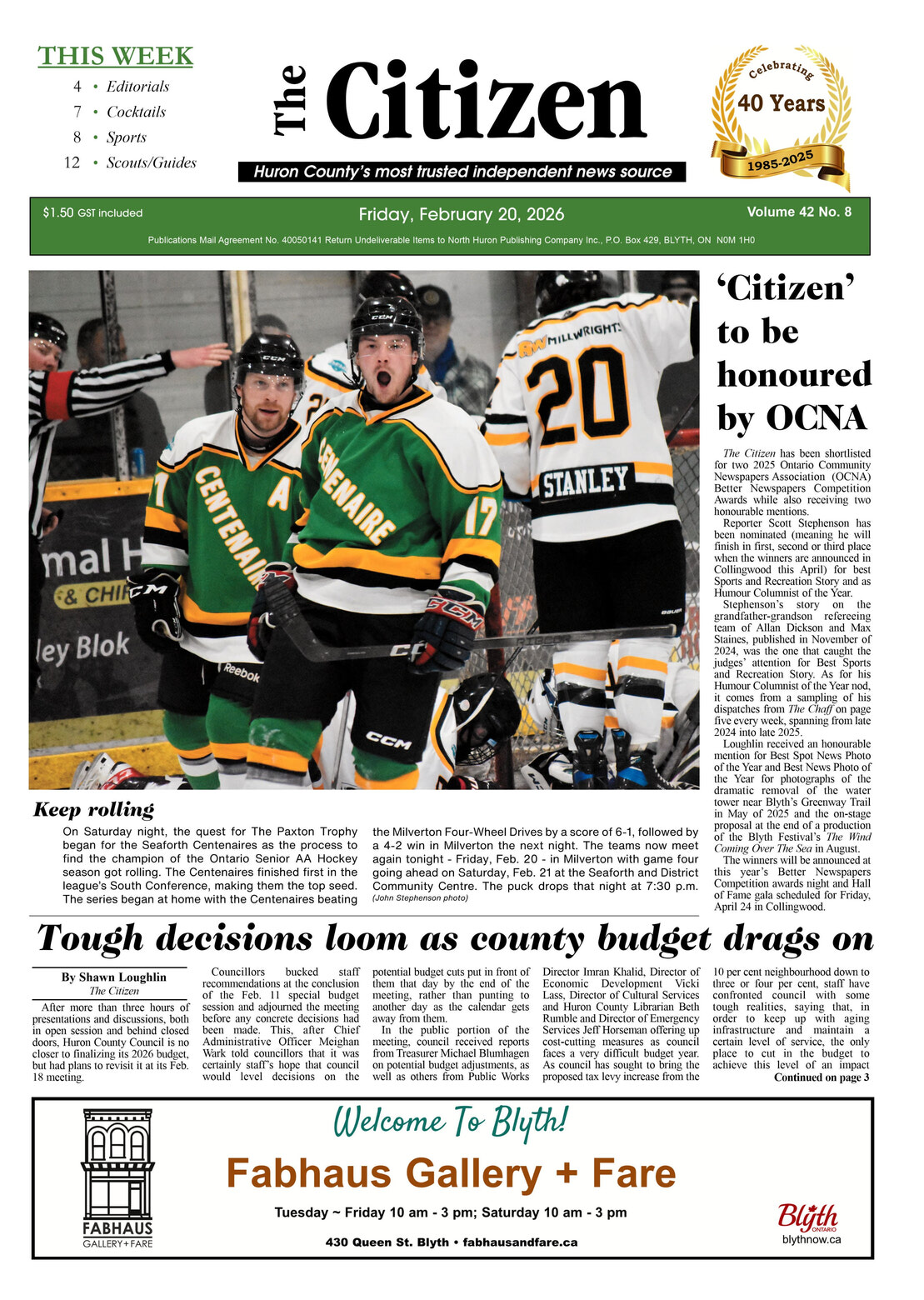 The Citizen has been shortlisted for two 2025 Ontario Community Newspapers Association (OCNA) Better Newspapers Competition Awards while also receiving two honourable mentions.