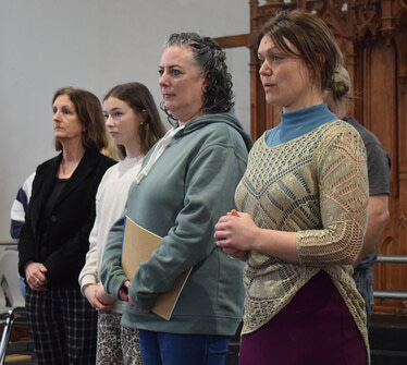 On Sunday, April 12, the Irish cast met for an afternoon rehearsal that offered a glimpse into the scope of the production. Dance instructor Lisa Petrie patiently guided performers through the steps of a party scene, while, across the room, musical director Eleanor Robinson led singers through the harmonies of the first act, patiently untangling challenging passages while simultaneously turning her attention to the practical side of the show, taking stock of available costumes and identifying what still needs to be sewn.
